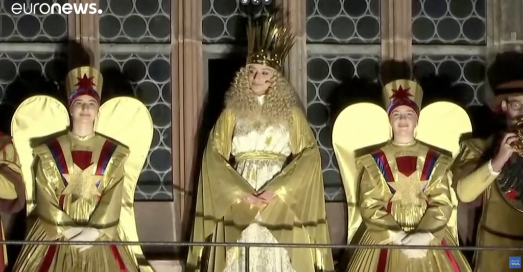 So entstand, anstatt das Evangelium von Jesus in den Mittelpunkt der Weihnachtsmärkte zu rücken, eine engelsgleiche oder gar königliche Gestalt — ein blondes, androgynes „Kind“ (Charakteristiken, die auch an den gefallenen Engel „Luzifer“ erinnern) mit Flügeln, weiß goldenem Kleid und Glöckchen — das sich besonders auf Weihnachtsmärkten und in Repräsentationsritualen wie dem Nürnberger Christkindspiel als kulturelles Symbol etabliert hat. Diese Figur, meist durch eine junge Frau mit langem und gelocktem, blonden Haar dargestellt, erfüllt heute unbewusst, da die meisten keine Kenntnis der historischen Ursprünge dieser Kulte haben, folkloristische Funktionen, anstatt das Evangelium der Bibel zu verkündigen.